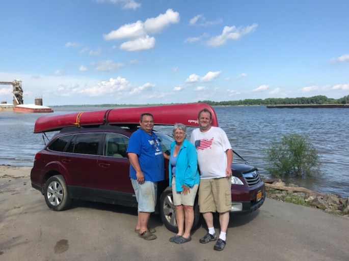 We will share more stories soon but for now our journey on the Ohio is over. We just got off the river after paddling against the afternoon winds, completing 130 miles this year. We are 8 miles short of the mouth of the river and will return, as planned, in October to finish those miles and celebrate with family and friends the 1250 miles we have paddled since 2001. Our travel helpers Brian and Stevie were in Mound City to greet us.
