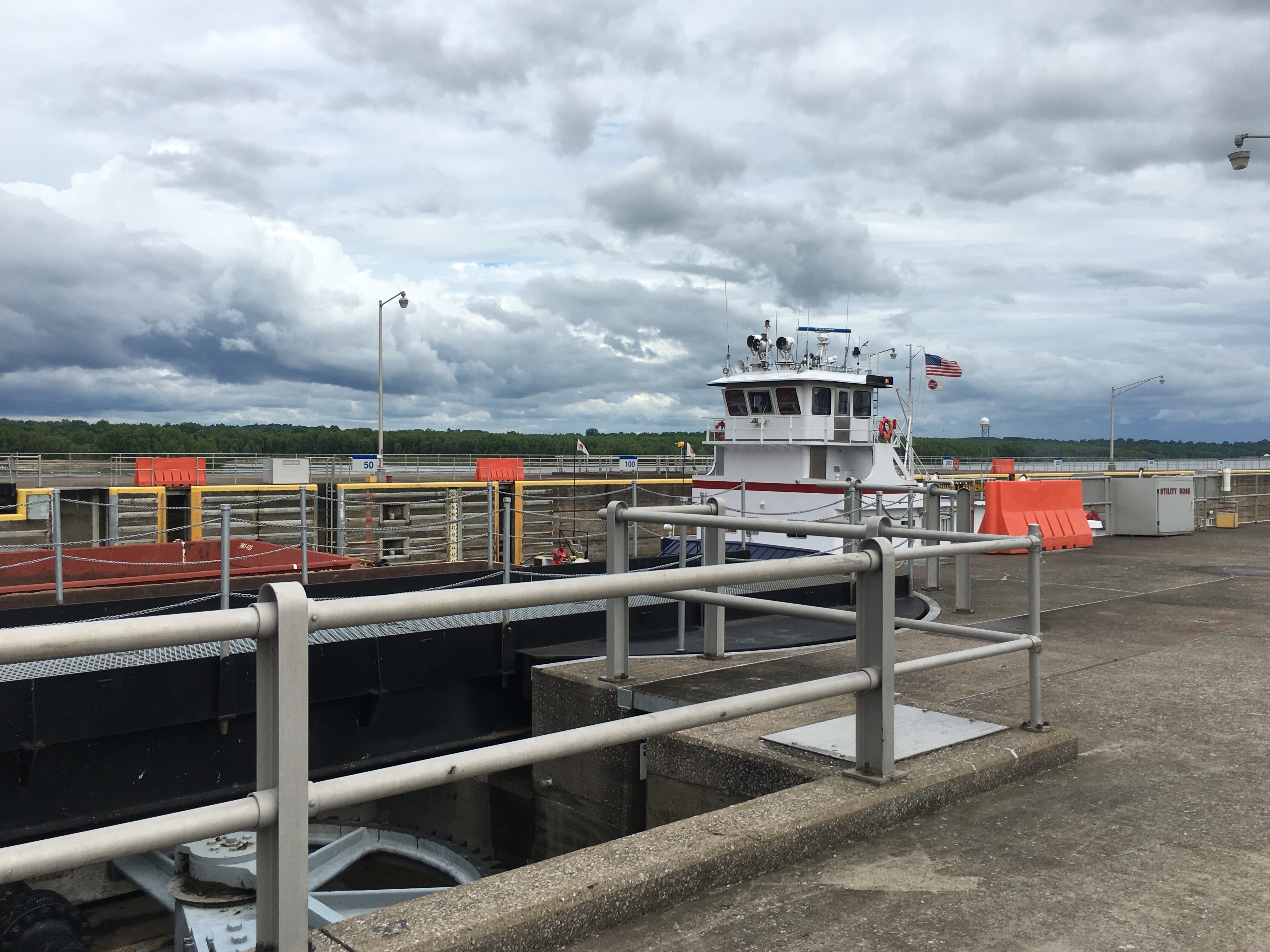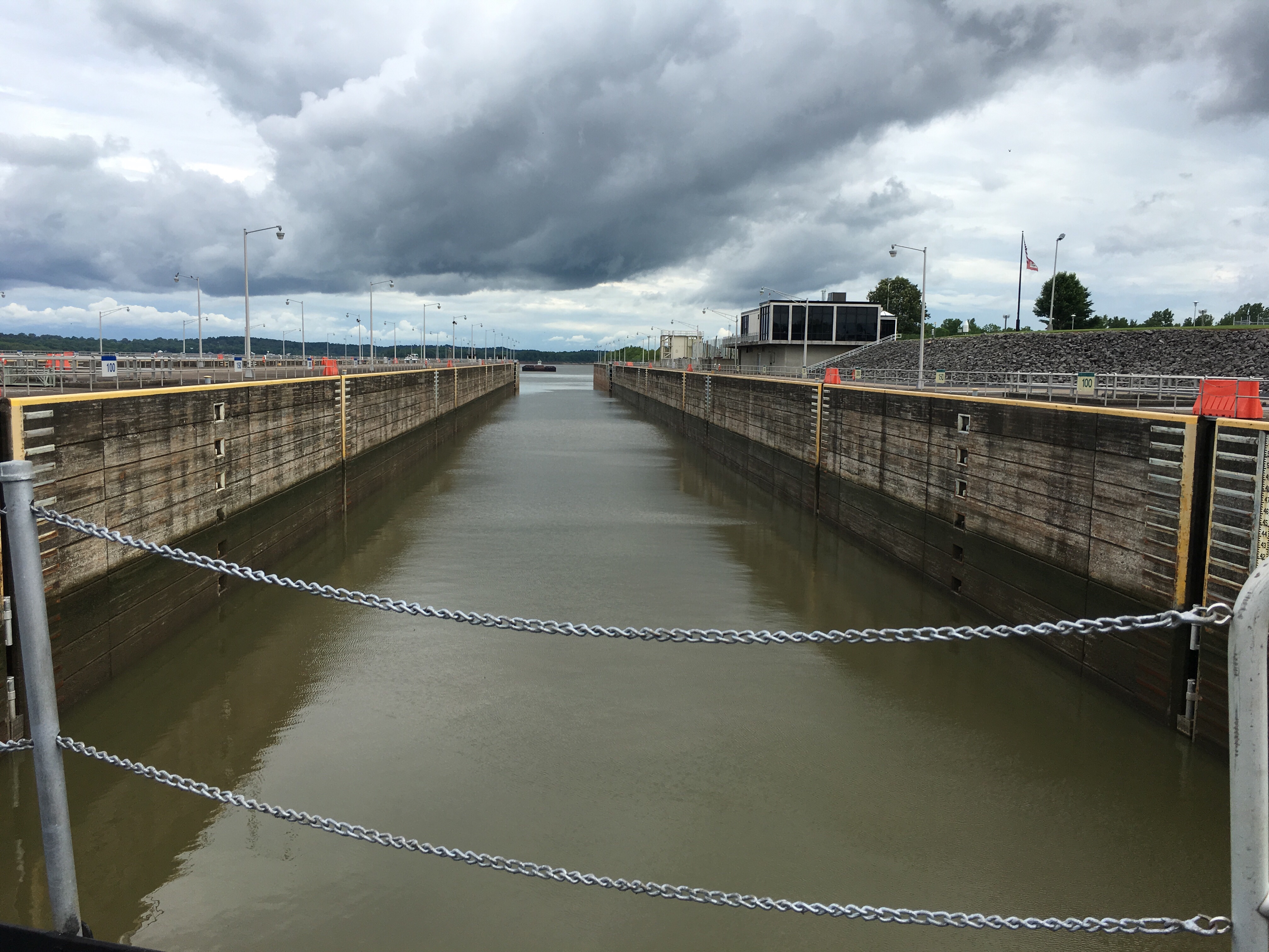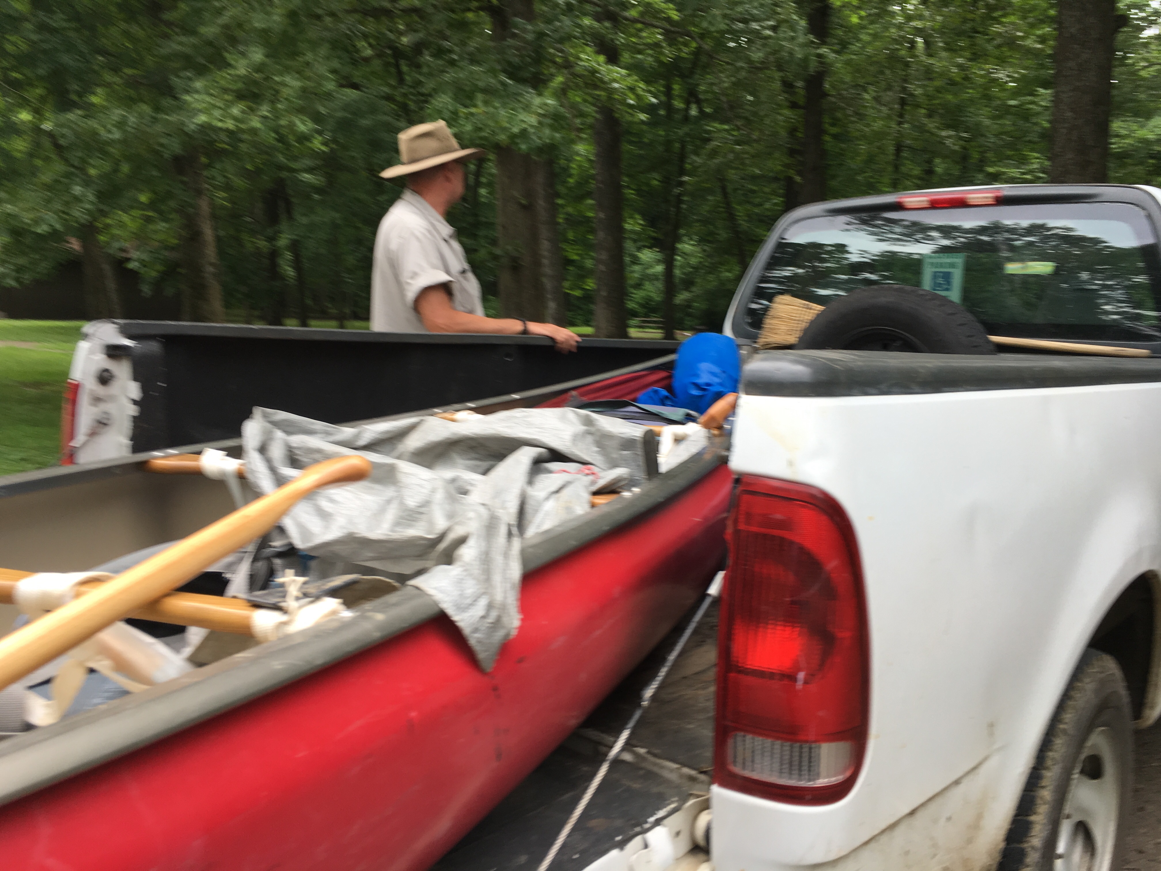 We are anticipating rain a lot of the day and pretty strong winds. However the winds never got unbearable and we were able to find shelter in some channels along the islands. One thing we are noticing as we get to the lower part of the Ohio River is that there are a lot of bars and a lot more islands undoubtedly do to the build up of silt along the way. We had to maneuver around more towboats and barges when we got to Paducah where the Tennessee River empties into the Ohio River. That provided a challenge for us but it worked out and we proceeded down the river and managed to find this beautiful state park before the afternoon rains hit. The visitor center was closed but we saw a man on a tractor and went to talk to him. Turns out he is a Ranger and he agreed to meet us with his truck and go pick up the canoe and all of our gear and bring it to a campsite. We just got the campsite set u we are sitting under a park shelter as the thunder and rain whirl around us. As soon as the rain stops for what looks like about an hour, we’re going to walk into Metropolis, Illinois, and see if we can find the Superman Museum. After a cozy night in the Holiday Inn in Paducah, Kentucky, Karen and I called for our first ever Lyft ride to take us back to Smithland, Kentucky, where we had left our canoe and some of our gear for the night. We just learned that our new friend Deputy Devin Brewer in Smithland had been watching out after our gear wondering what had become of us. We had met him the night we got into Smithland. Karen just spoke to him on the phone and filled him in on our day.