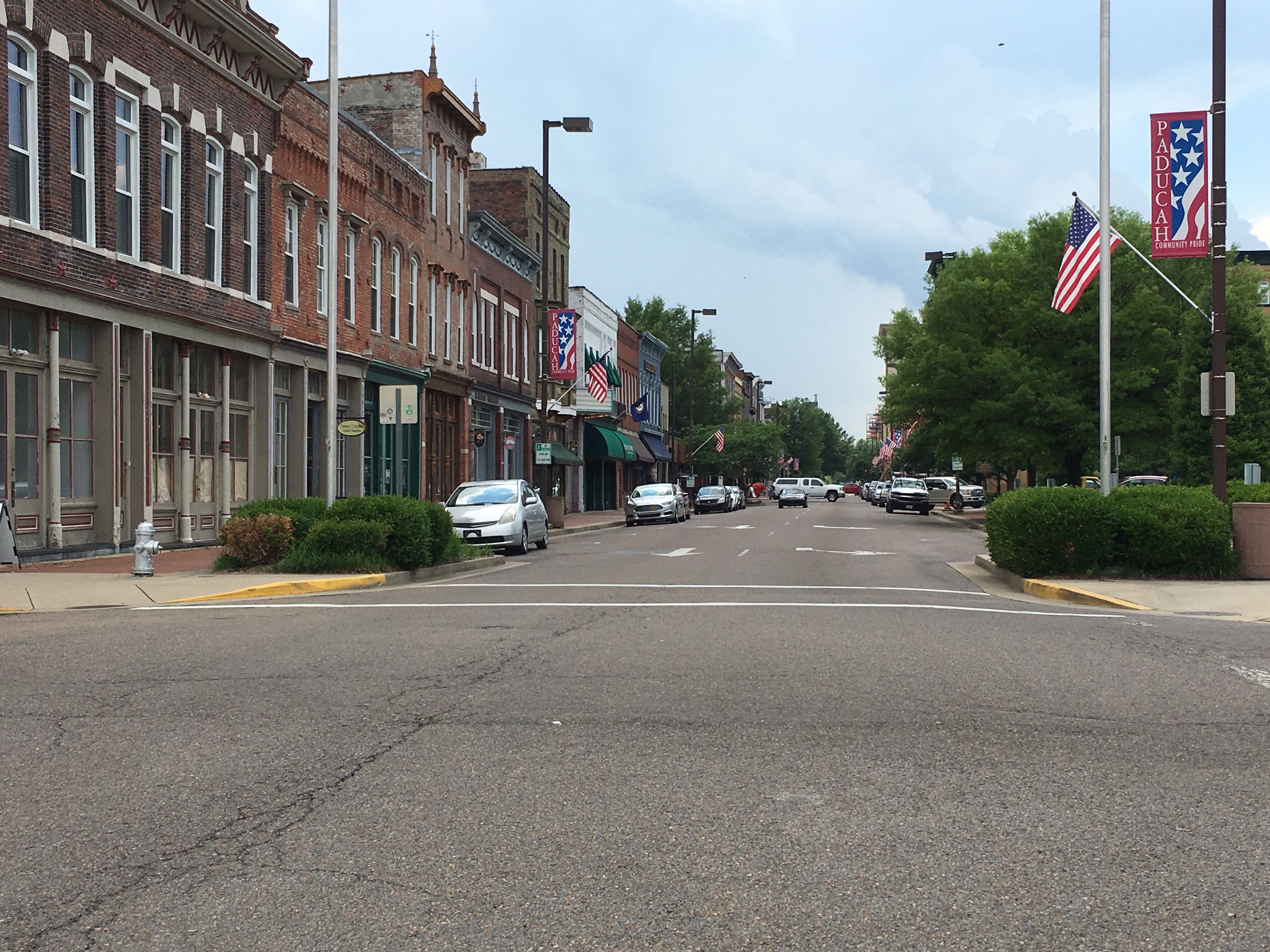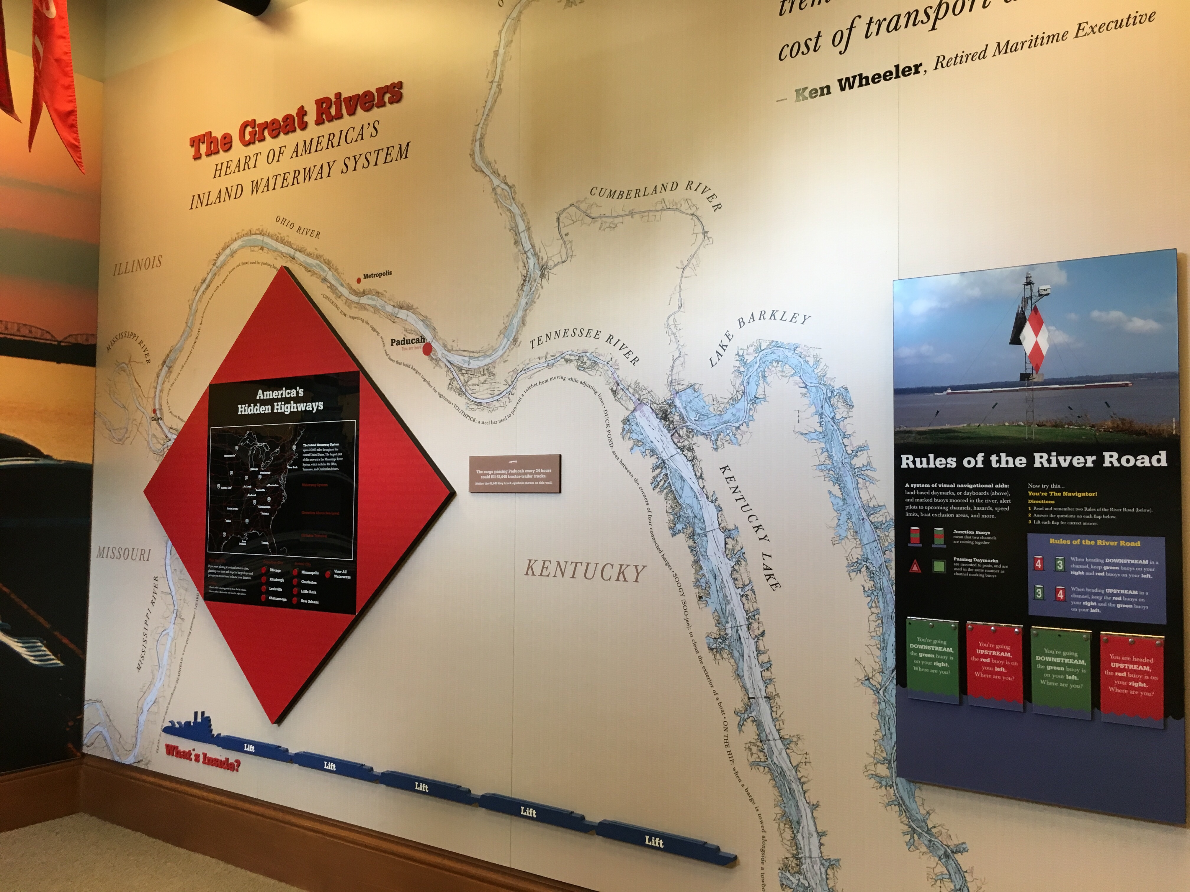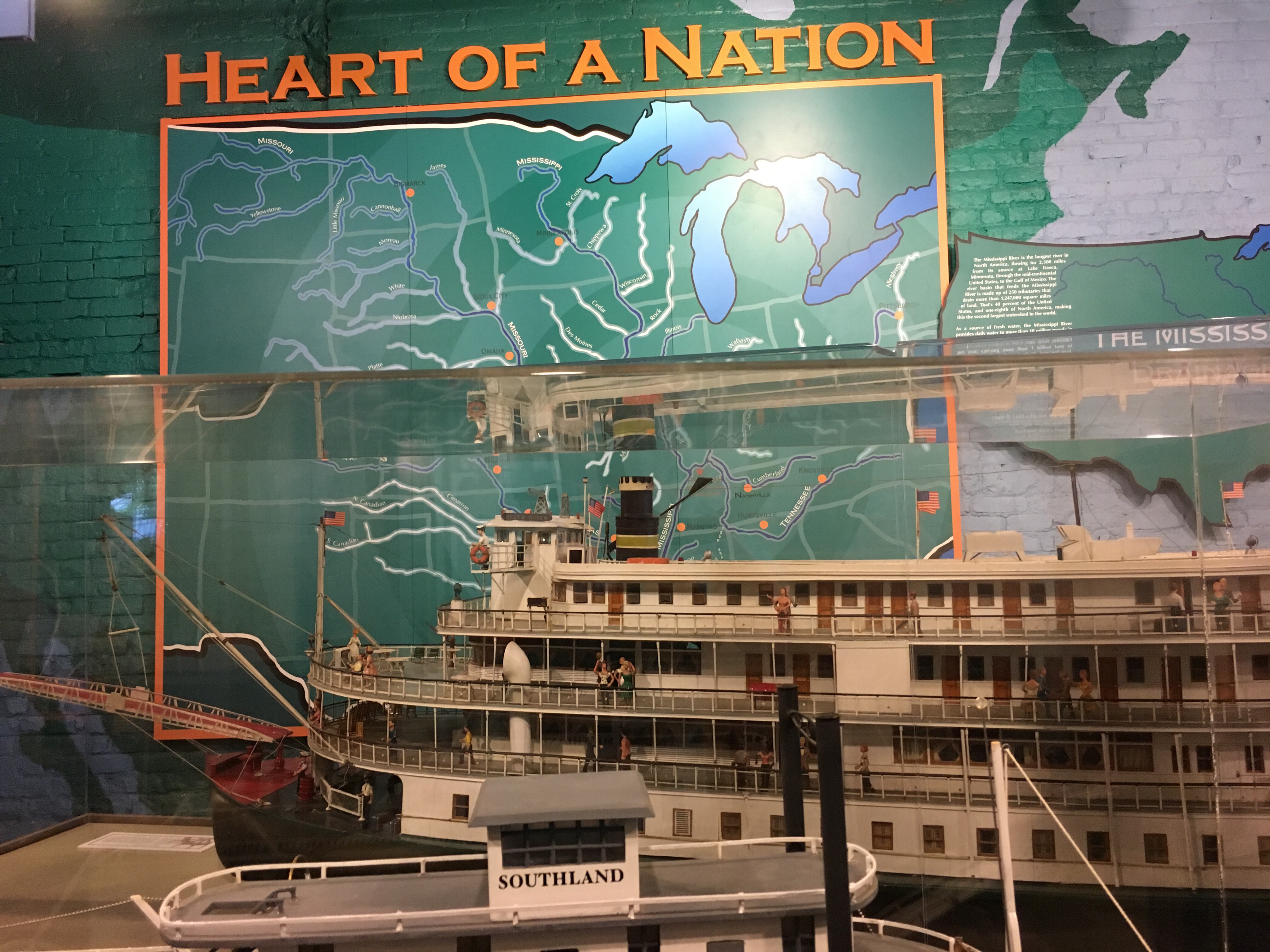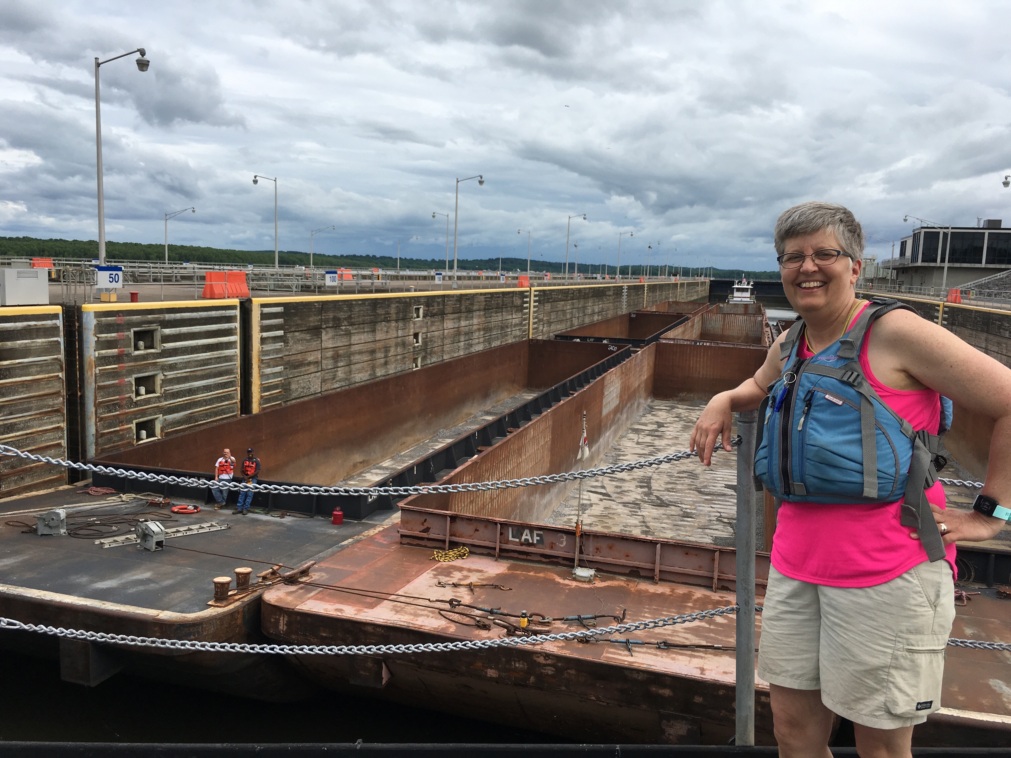 We are anticipating rain a lot of the day and pretty strong winds. However the winds never got unbearable and we were able to find shelter in some channels along the islands. One thing we are noticing as we get to the lower part of the Ohio River is that there are a lot of bars and a lot more islands undoubtedly do to the build up of silt along the way. We had to maneuver around more towboats and barges when we got to Paducah where the Tennessee River empties into the Ohio River. That provided a challenge for us but it worked out and we proceeded down the river and managed to find this beautiful state park before the afternoon rains hit. The visitor center was closed but we saw a man on a tractor and went to talk to him. Turns out he is a Ranger and he agreed to meet us with his truck and go pick up the canoe and all of our gear and bring it to a campsite. We just got the campsite set u we are sitting under a park shelter as the thunder and rain whirl around us. As soon as the rain stops for what looks like about an hour, we’re going to walk into Metropolis, Illinois, and see if we can find the Superman Museum. After a cozy night in the Holiday Inn in Paducah, Kentucky, Karen and I called for our first ever Lyft ride to take us back to Smithland, Kentucky, where we had left our canoe and some of our gear for the night. We just learned that our new friend Deputy Devin Brewer in Smithland had been watching out after our gear wondering what had become of us. We had met him the night we got into Smithland. Karen just spoke to him on the phone and filled him in on our day.
