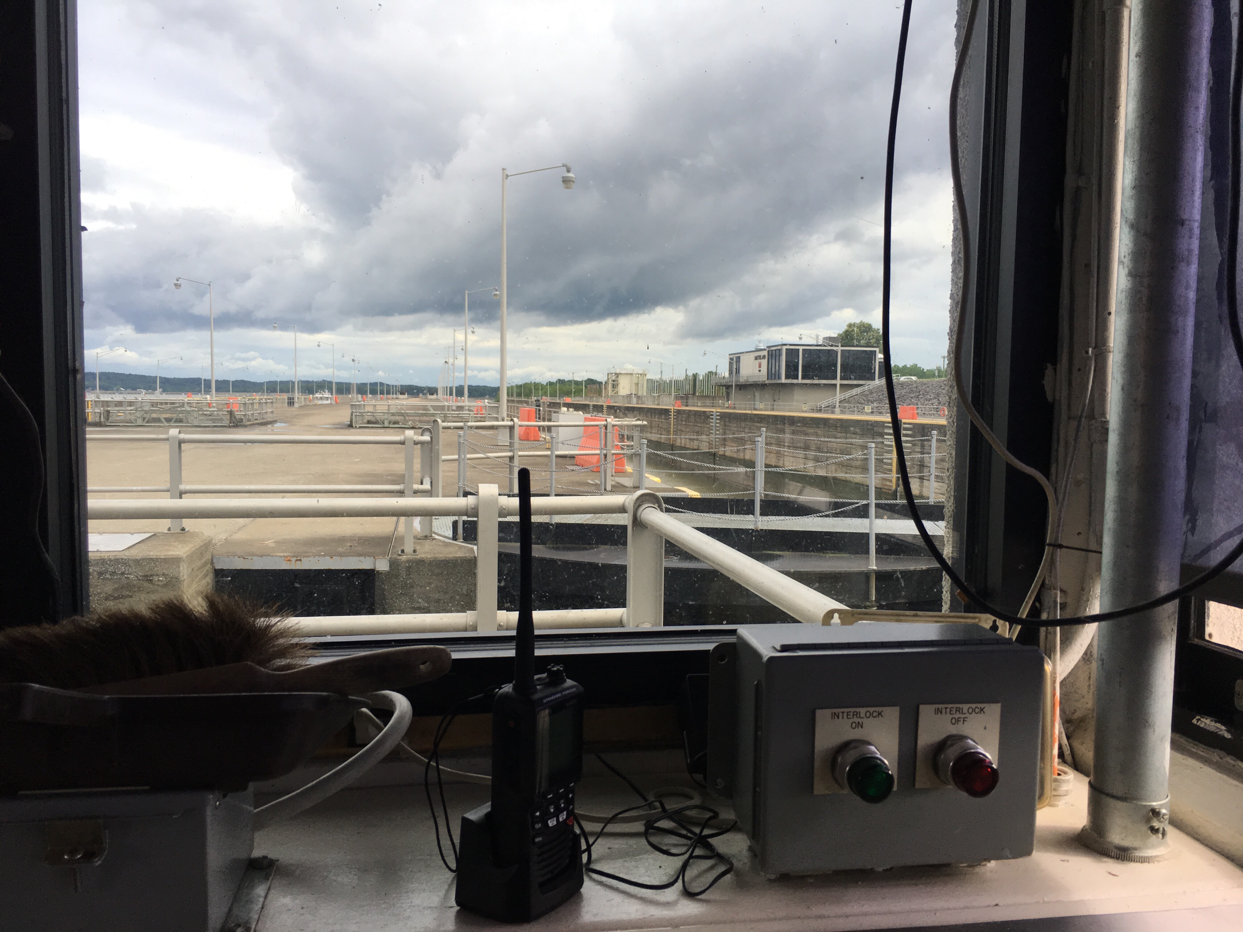wheels back on the canoe and that helped immensely! While longer than the last one, it was relative easy in terms of energy thanks to the wheels. We had to just get it up on grassy incline to the flat area. At this dam we watched a man fishing for bait fish with a net he would throw out. Fascinating.