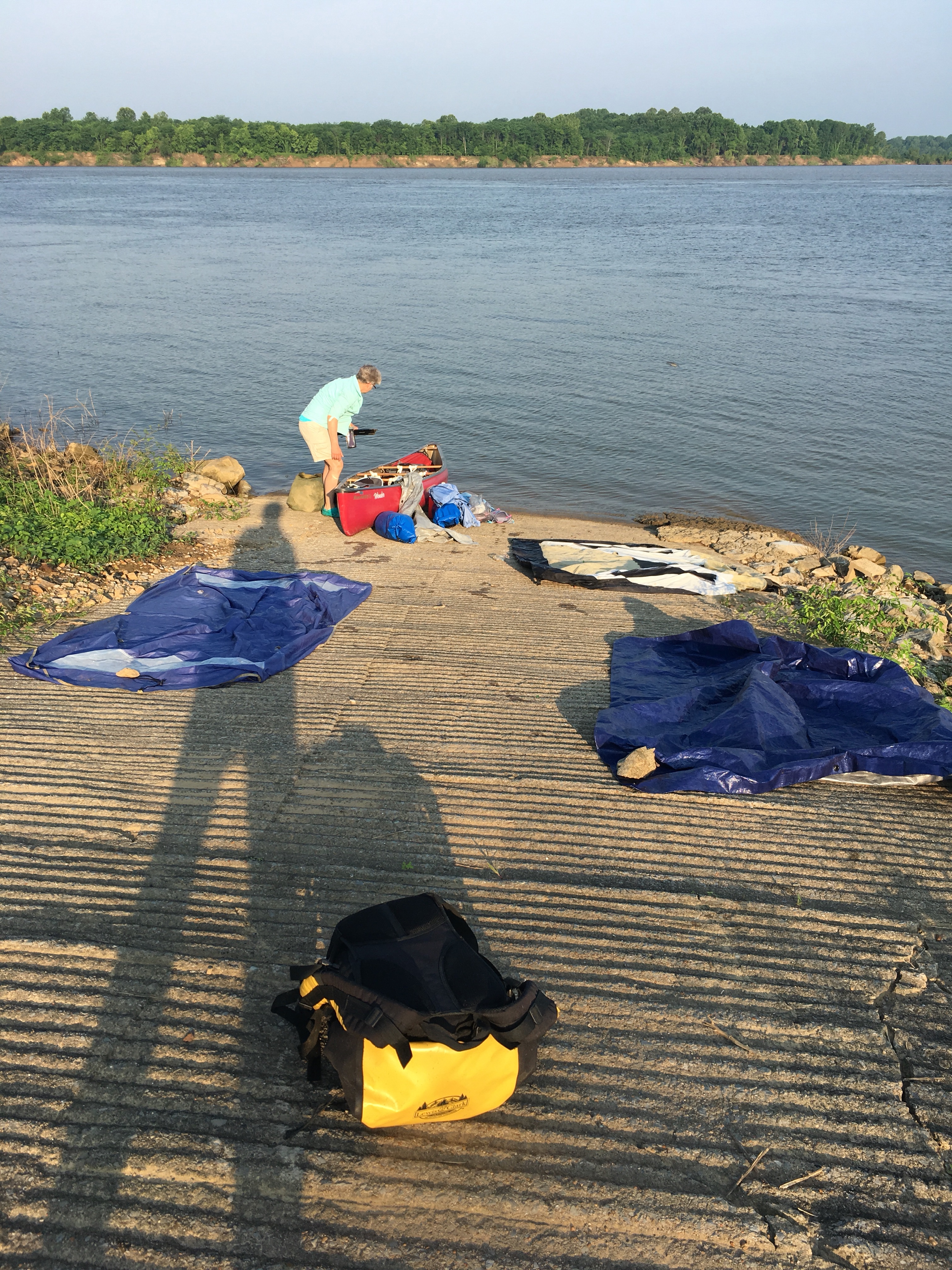 After a cozy night in the Holiday Inn in Paducah, Kentucky, Karen and I called for our first ever Lyft ride to take us back to Smithland, Kentucky, where we had left our canoe and some of our gear for the night. We just learned that our new friend Deputy Devin Brewer in Smithland had been watching out after our gear wondering what had become of us. We had met him the night we got into Smithland. Karen just spoke to him on the phone and filled him in on our day.