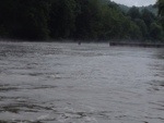 We set off Sunday morning after a great night’s sleep in the Holiday Inn in Huntington. Chris sent us off from the sinking barge with our first full day of paddling in front of us. We didn’t know for sure how far we would or could paddle but we set our eyes on the Worthington (WV) Boat Club which was on the list of boat clubs I had downloaded from the web. We tried calling ahead but the phone was disconnected. We decided we would still hope that we could camp there and maybe even get a shower. I told Karen that if no one was there, we could just camp and if anyone asked what we were doing, we could just say Bill told us we could camp there. I figured that there had to be a Bill at the boat club!