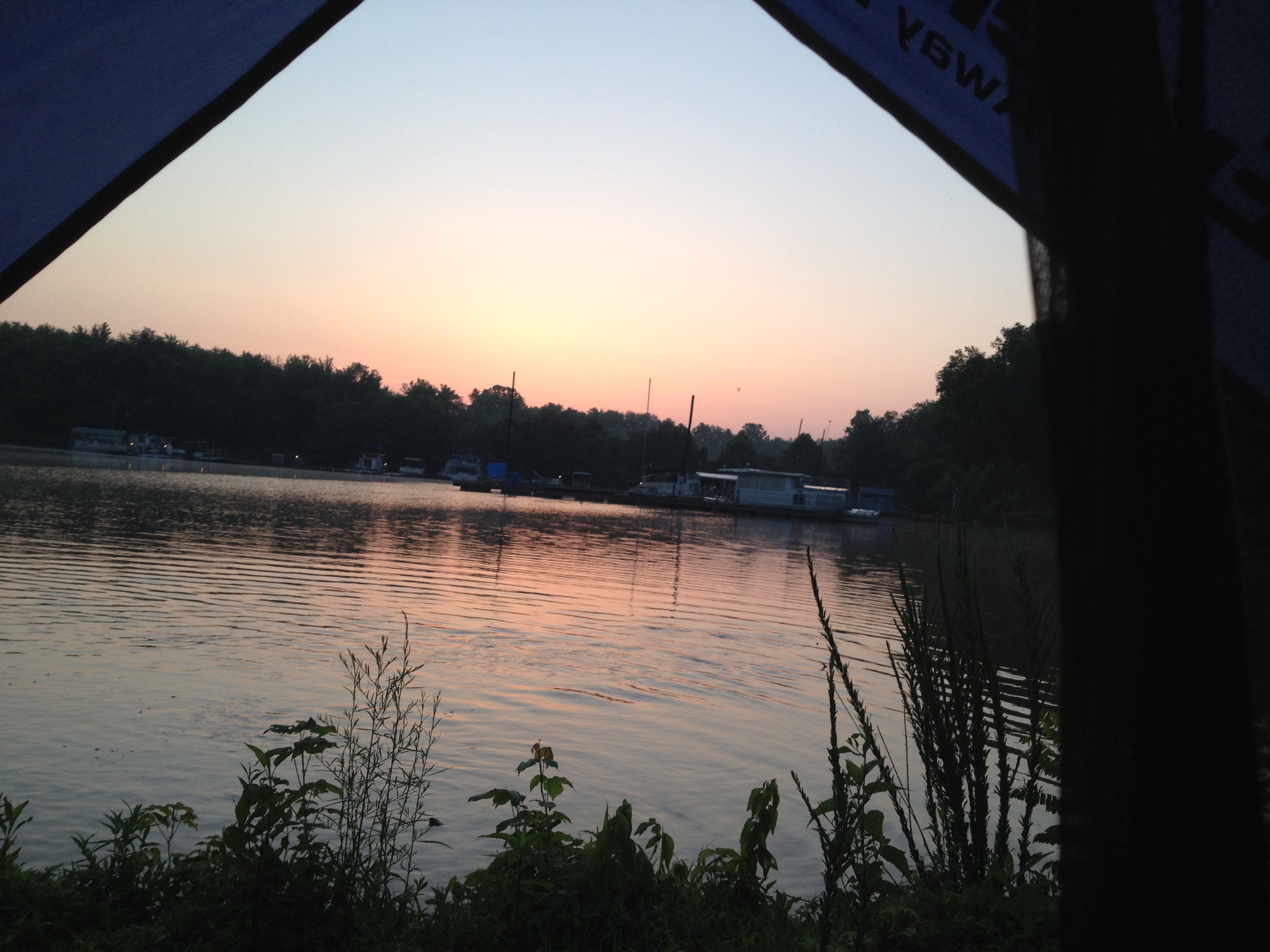 You were quick to welcome us and suggest we camp up the stream. Thanks for guiding us on your kayak to the small dock where we could tie up. However, the abundance of poison ivy took us back to the boat club where you showed us to a little peninsula that we unofficially camp on. You offered your sickle which was a little scary to me that you even had one with you but I soon understood that we could use it to knock down the weeds. Though I did consider that we might want THAT to be our weapon.