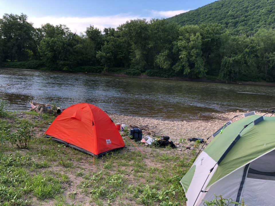 June 12: We met in Sunbury, Pennsylvania at around 2 o’clock in the afternoon, Karen having traveled from Jamestown and Maggie from Vermont. We were fortunate to be able to leave a car in a state park in Sunbury where we hope to end on Thursday or Friday. And then we drove up to Towanda where we ended last year. The local mechanic let us leave another car there and by 5 o’clock we were out on the river. We intended to paddle for about 5 miles to a rustic campsite that was on our map but we couldn’t find the campsite and kept on paddling. 10 miles in we found this amazing place called French Azilum. We had Marie-Antoinette to thank for this place as it was developed in hopes that she would escape the French Revolution and her life would be saved here in Pennsylvania. We all know how that ended. But we were grateful to have an asylum of our own there on the banks of the Susquehanna River.