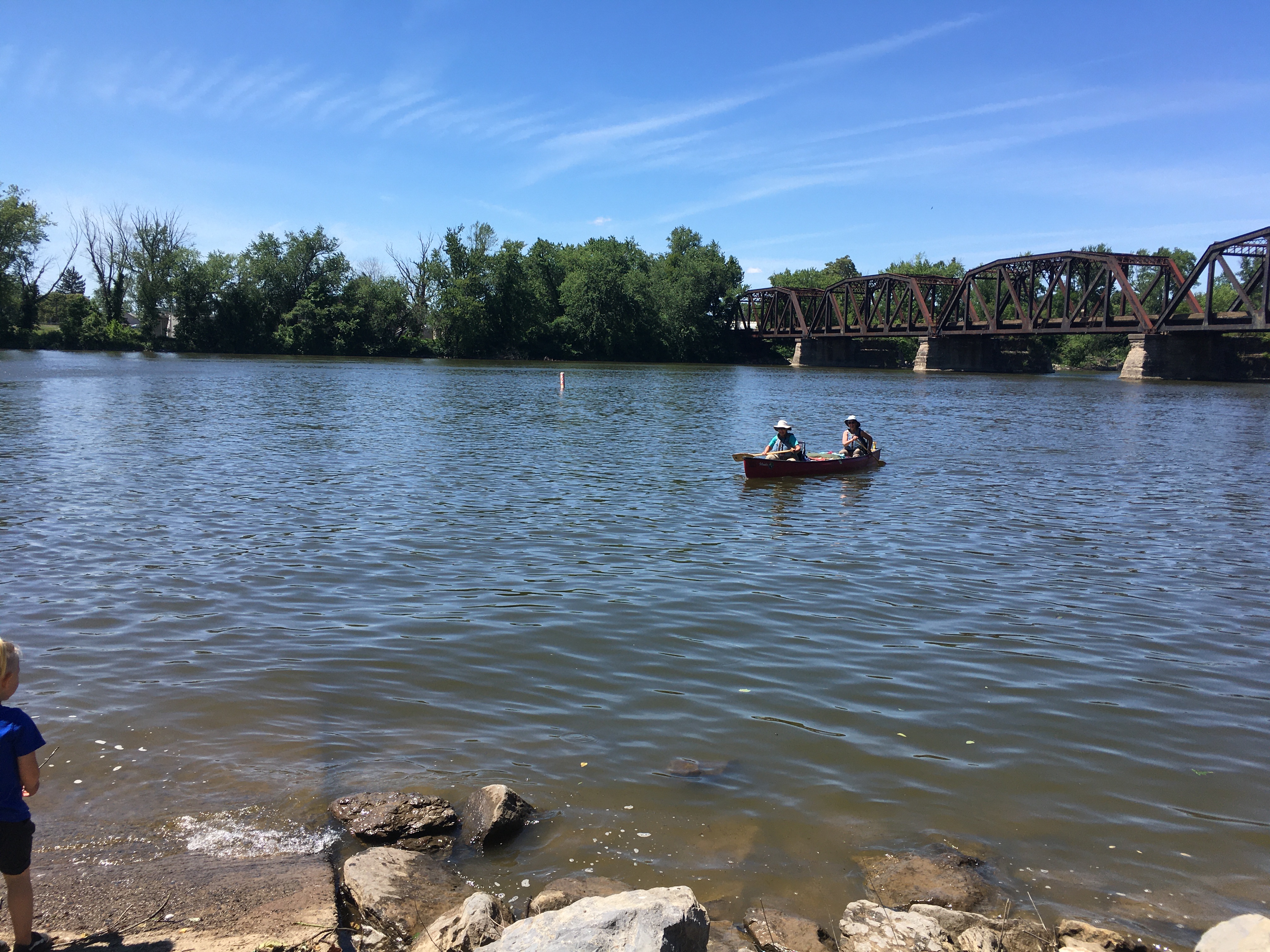 Our first leg was a ten mile paddle to Danville where we were met at the ramp by a boy asking about our canoeing. It was there we also met a man who told us about the swarms of mayflies and introduced us to a young girl, perhaps 3, with an unusually thick head of long, beautiful hair. I commented to the mom on the hair at which point the man said that the girl had a great vocabulary as well. It was notable that this older man pointed out her intelligence as well as her beauty. We will remember his not so subtle reminder to praise young girls for their brains, not just their looks. He also had a vocabulary that included one of our favorite words: confluence! We have come to many confluences of rivers and creeks over the years we have paddled.